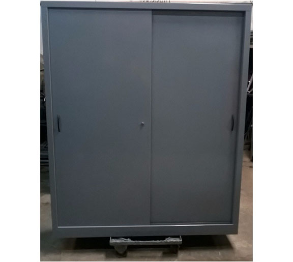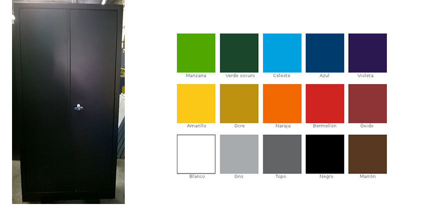 Estructura exterior en chapa Nº 22 - Puertas Nº 20 Reforzadas. Incluye 3 Estanterias regulables. Pintura horneable a 180º de temperatura. 90 cm (Frente) - 1,80 m (Alto) - 45 cm (Fondo) Medidas de cada puerta: 40 cm (Ancho) x 1,65 m (Alto)